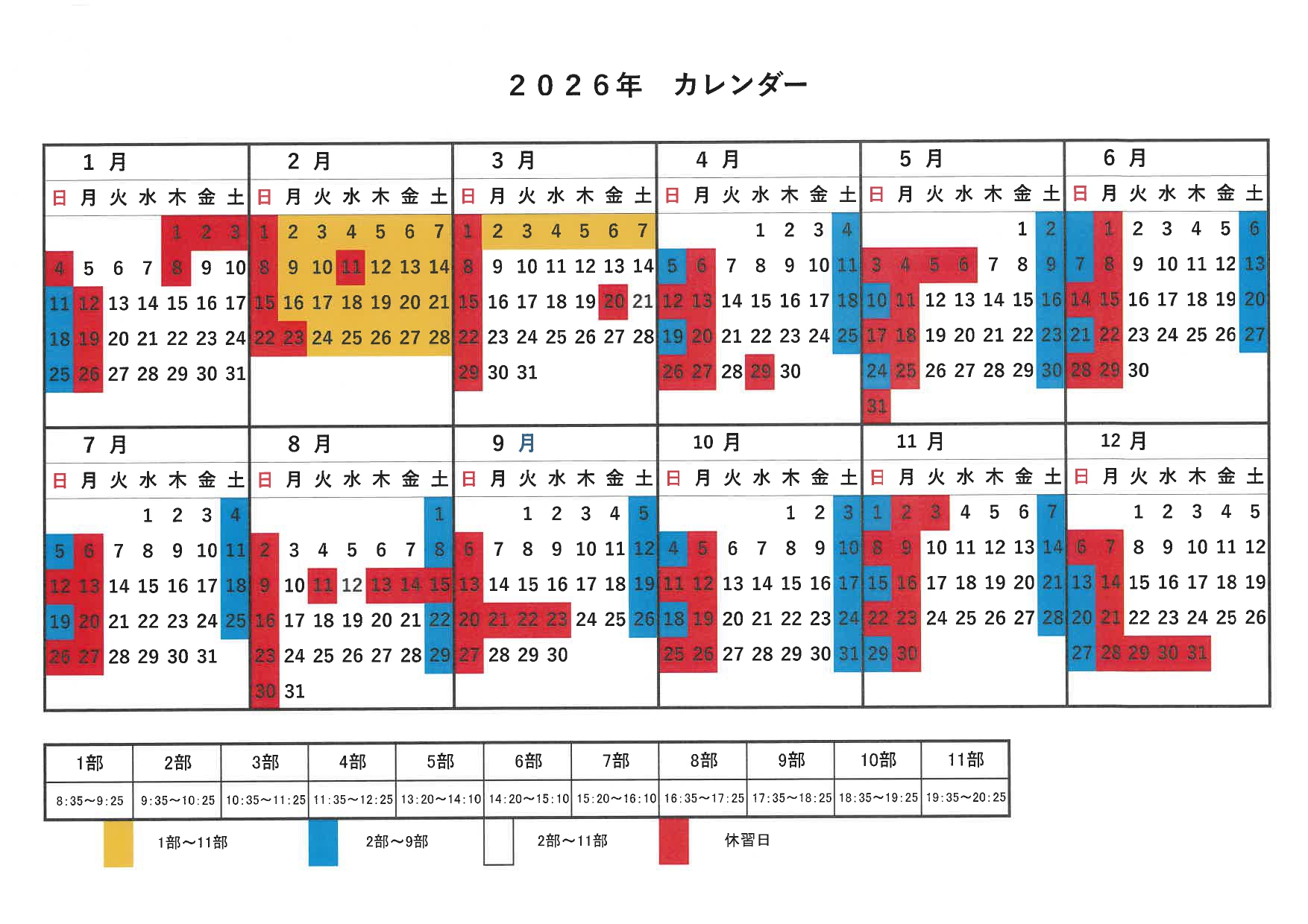 - また、2部~9部まで、2部~7部までの教習日もありますので詳しくは、教習所カレンダーにてご確認ください。